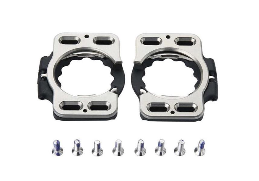 Tacchetti per pedali, piastre per pedali in lega di titanio e alluminio, ogni piastra per pedali pesa circa 55 grammi con base e materiale di montaggio. Accesso da entrambi i lati con libertà di movimento da 0 a 15° per montaggio a 3 e 4 fori, attacco per tacchette. Adatto solo per i pedali del nostro negozio con il n. di articolo 53664708 e 53664709.